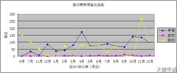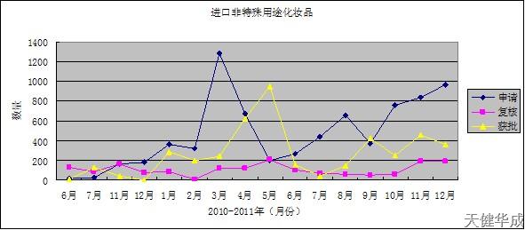 北京天健华成公司作为化妆品注册代理行业的领先品牌企业,积累多年的成功经验,曾首创推出了《进口化妆品申报注册全攻略》、《化妆品进口完全指导手册》、《特殊类化妆品申报全攻略》、《破解化妆品申报注册难点》等一系列指导性专题文章,在业界获得极大反响,并得到各方面的赞誉。自2012年开始,天健华成将原创推出新的系列文章,每年年终对当年的进口化妆品注册情况进行统计分析,并结合当年的相关政策作出走势分析。希望我们的努力能给广大化妆品行政许可申请企业带来切实的帮助。更多即时信息请登录中国注册申报网(http://www.zhuceabc.com、http://www.zhuceabc.cn)。
